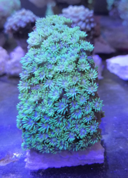 OPIS: Goniopory to koralowce średnio trudne do utrzymania przy życiu i nie są polecane początkującym akwarystom rafowym. Krótkie, zielonkawe gatunki są mniej wytrzymałe i trwałe niż różowe lub fioletowe. Aby wyhodować Gonioporę, należy podjąć wiele środków ostrożności. W zbiorniku musi znajdować się odpowiednia ilość wapnia i żelaza, aby wspomóc rozwój szkieletu. Powinny być dobrze ustawione na solidnej skale, aby uniknąć szkodliwych upadków. Podczas umieszczania Goniopory muszą mieć wystarczająco dużo miejsca, aby rosnąć i poruszać mackami.